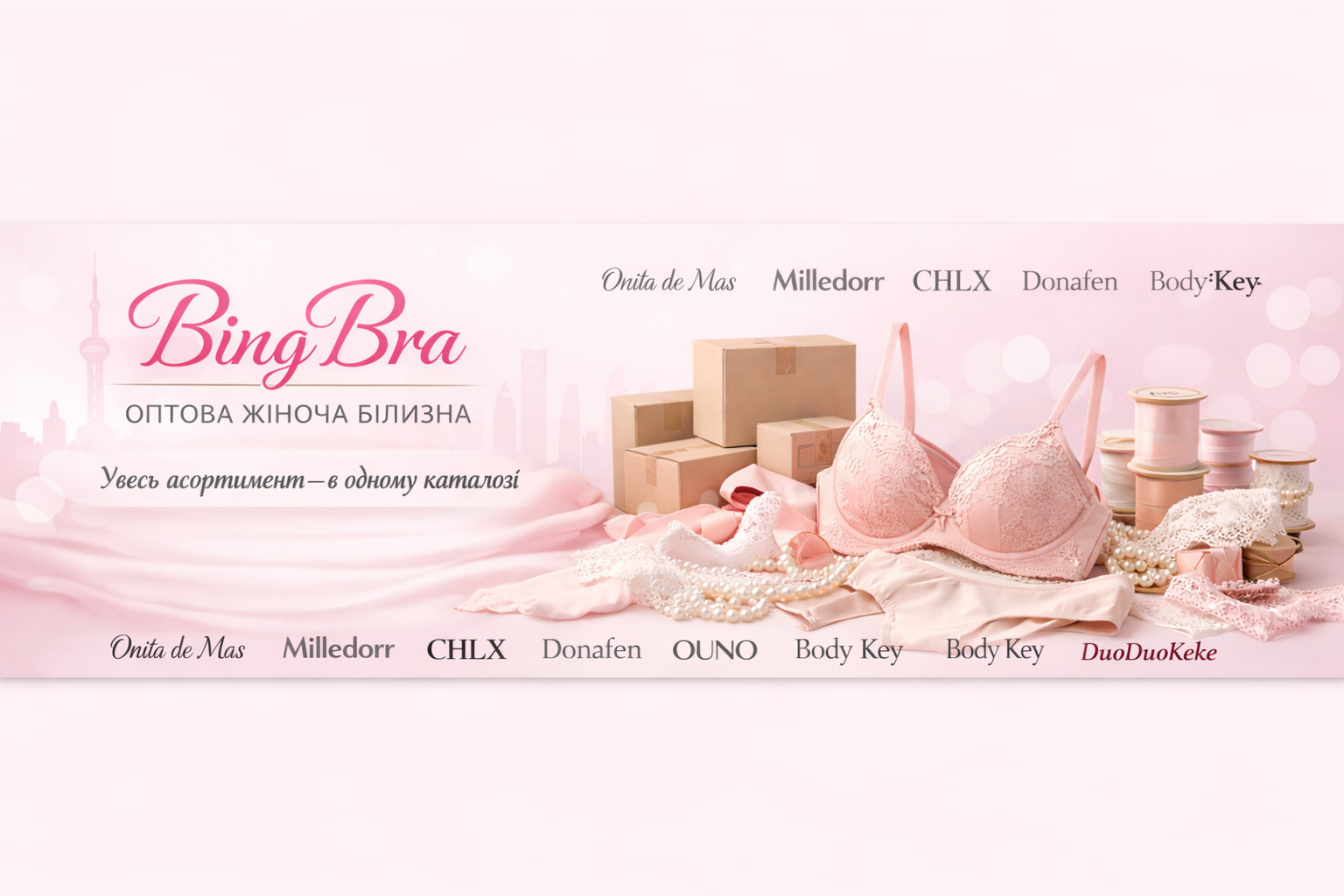Вітаємо в BingBra — професійному оптовому онлайн-хабі, де якість зустрічається з вигідними інвестиціями. Ми спеціалізуємося на прямих поставках жіночої білизни від лідерів ринку, чиї імена стали синонімами комфорту та елегантності: Donafen, Onita de Mas, Duoduo Keke, Ouno, Milledor та CHLX.